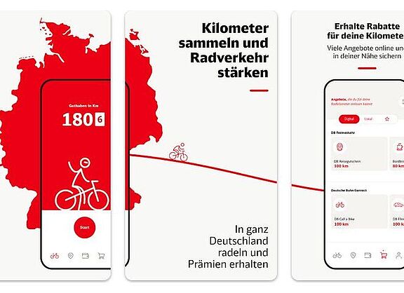 Die App DB Rad+ der Deutschen Bahn (DB) ist ab sofort in ganz Deutschland verfügbar. Mit der App lassen sich Prämien für Kilometer sammeln. Die anonymisierte Fahrraddaten unterstützen Kommunen bei der Verkehrsplanung.