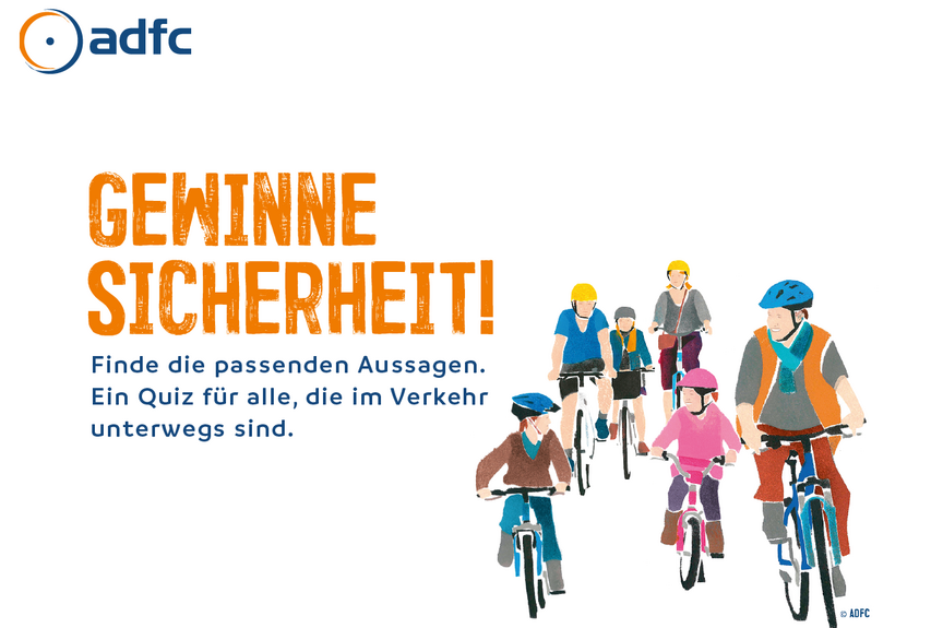 Das ADFC Verkehrsquiz beinhaltet 14 verschiedene verkehrsrechtliche Fragen rund um das Thema Fahrrad und Verkehr.